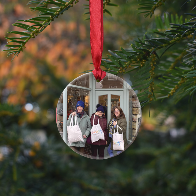 To send your photos: Please email EnterpriseHub@grangecentre.org.uk referencing your order number, and attach images in a JPEG format. We will proof your artwork before printing to ensure you receive the highest quality item. Different images can be printed on both sides of each decoration.